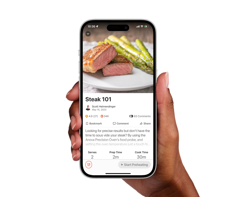 Med Anova-appen kan du nemt følge med i din madlavning, selv når du ikke er hjemme. Du skal blot indstille den, fortsætte din dag og komme tilbage til et perfekt tilberedt måltid, der er klar til servering.