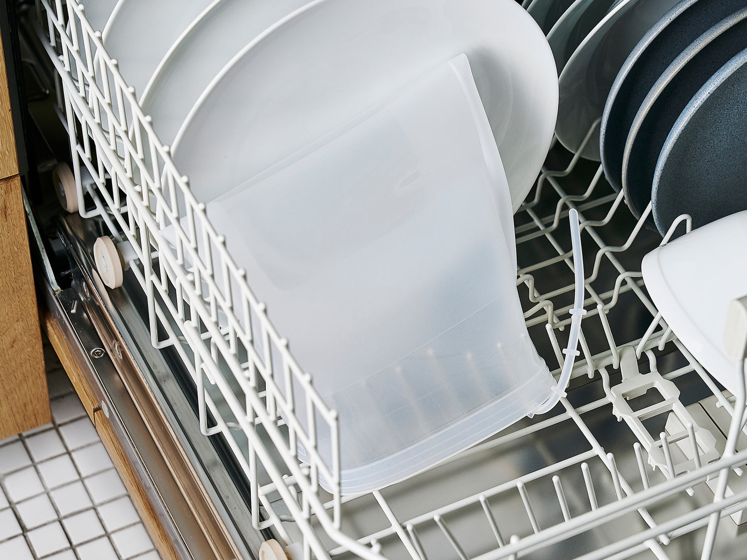 Påsen kan enkelt vändas ut och in för rengöring av alla ytor, antingen för hand eller i diskmaskinen.